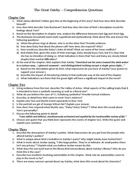 Read Online Great Gatsby Comprehension Questions Answers Kindle Editon