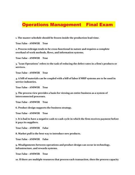 Download Service Operations Management Final Exam Answers PDF